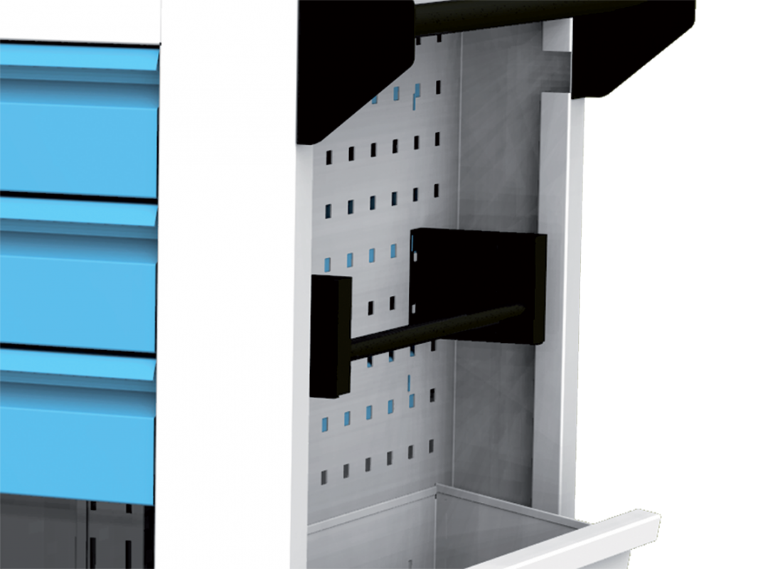 Dílenský vozík na nářadí je standardně vybaven cylindrickým zámkem se dvěma klíči. Jeden zámek umístěný v horní části korpusu uzamyká všechny zásuvky, jeden zámek uzamyká boční dvířka, zámky nejsou uzamykatelné stejným klíčem, ale je možné tuto variantu objednat.