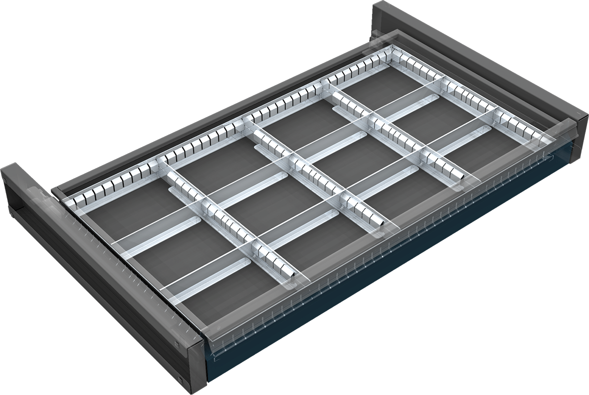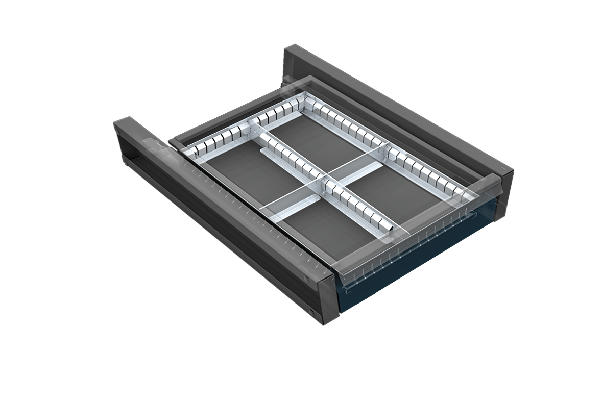 - 2 x sklopené police o rozměrech 435 x 565 mm - (NCS_POL_02) nosnost 40kg. - 1 x zásuvka o rozměrech 95 x 379 x 432 mm - (SPD_13_Z) nosnost 50kg.