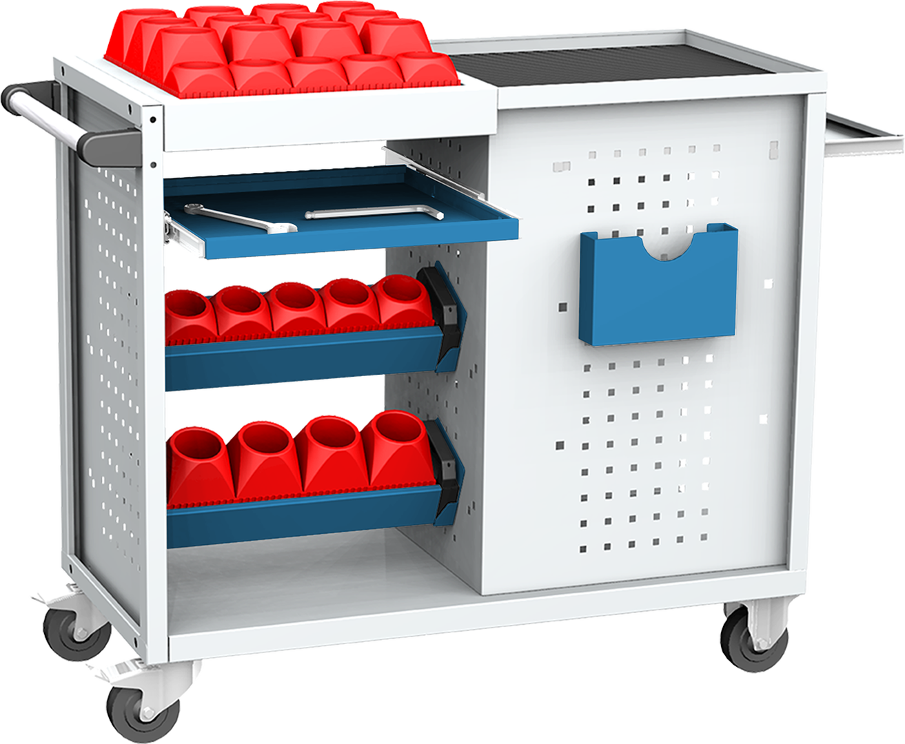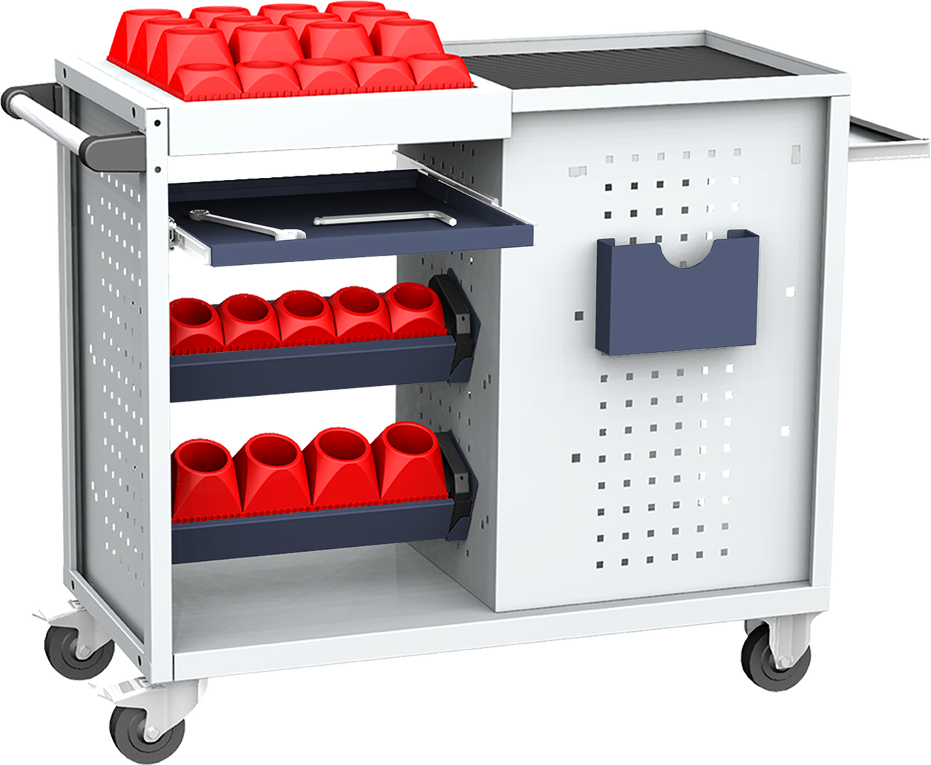 Vozík z řady NC programu je určen pro přepravu nástrojů v plastových lůžkách.