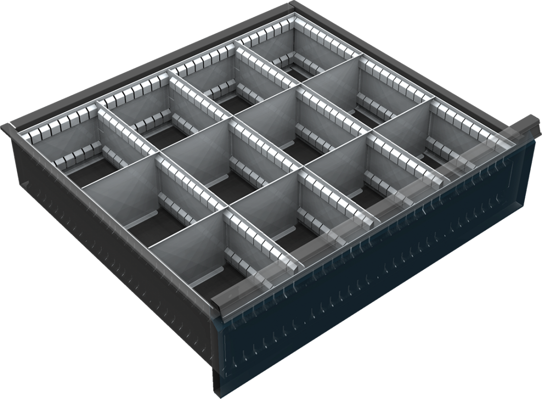 Plechové dělení rozděluje zásuvku na 12 oddělení. Parametry