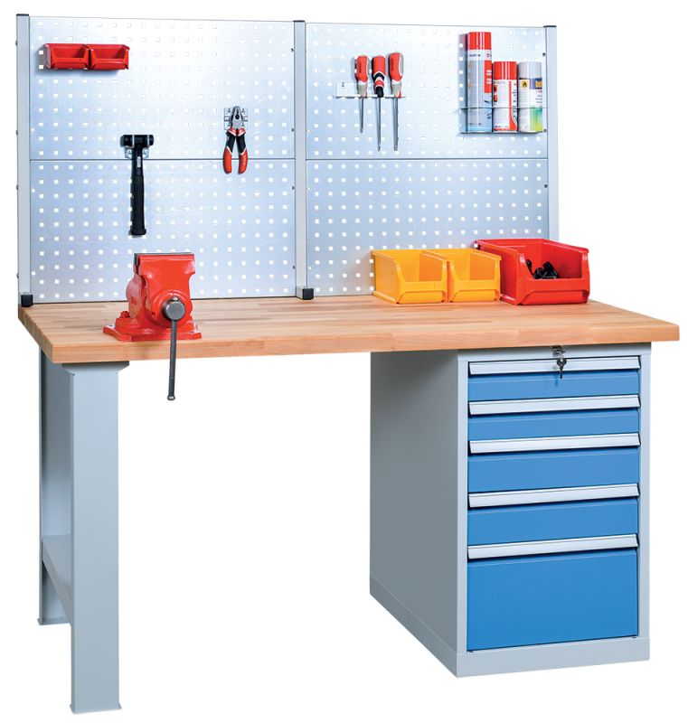 This is a sample of an assembled workshop workbench from our DPS line. This table was created in our online Workbench configuration application at www.workbench-creator.com