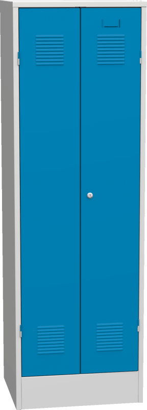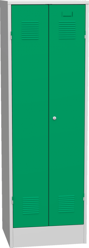 Velkoobjemová šatní skříň je konstruována tak, aby bylo možné obě křídla uzamknout jedním zámkem. Uživatel tak získává k dispozici celou šíři skříně. V nabídce jsou skříně šíře 500, 600 nebo 800 mm.